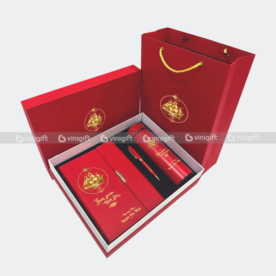 Kết hợp bình giữ nhiệt với sổ, bút, áo, và túi vải để tạo thành combo quà tặng là một ý tưởng tuyệt vời để tạo ra một gói quà đa dạng và độc đáo.