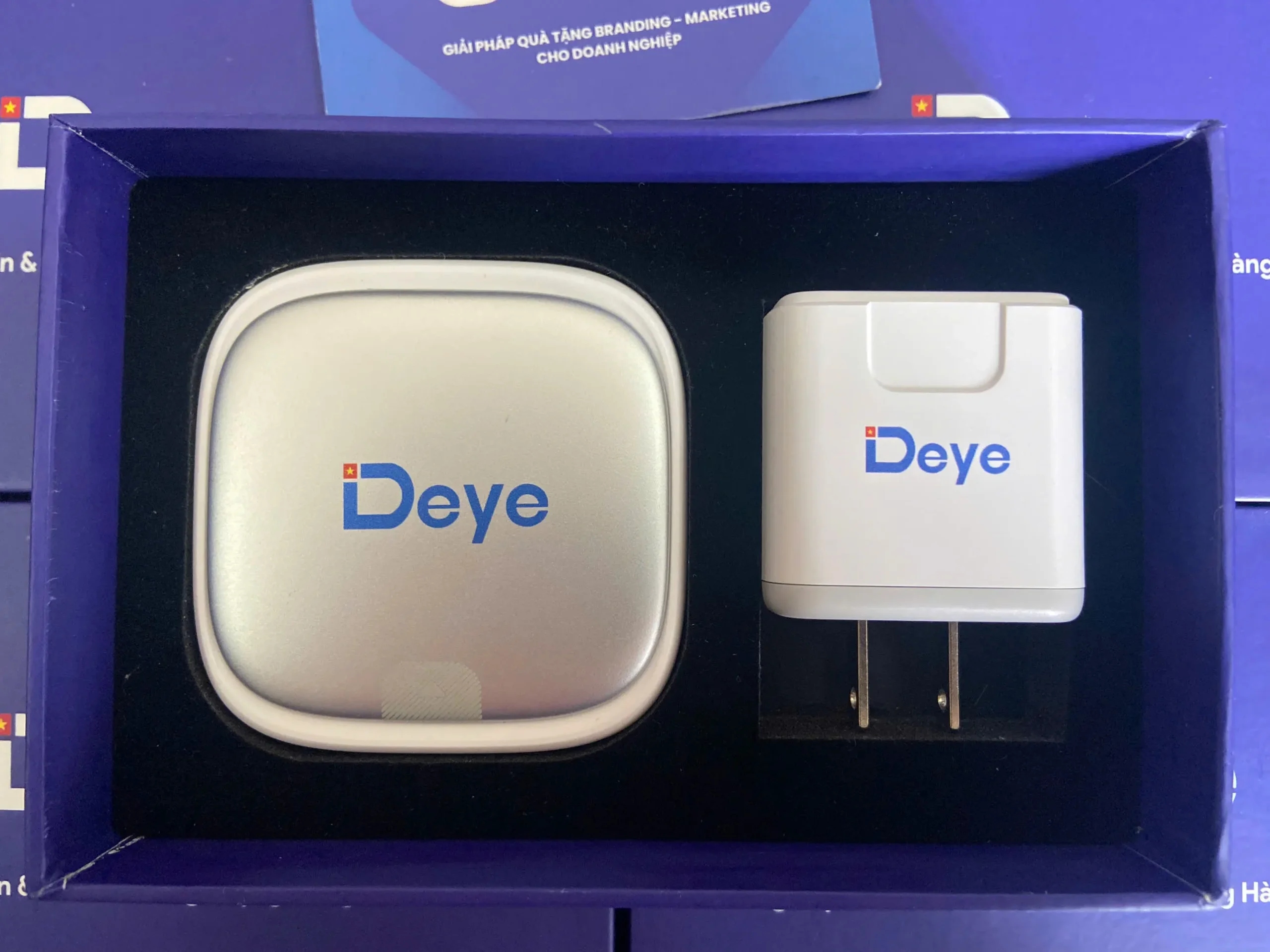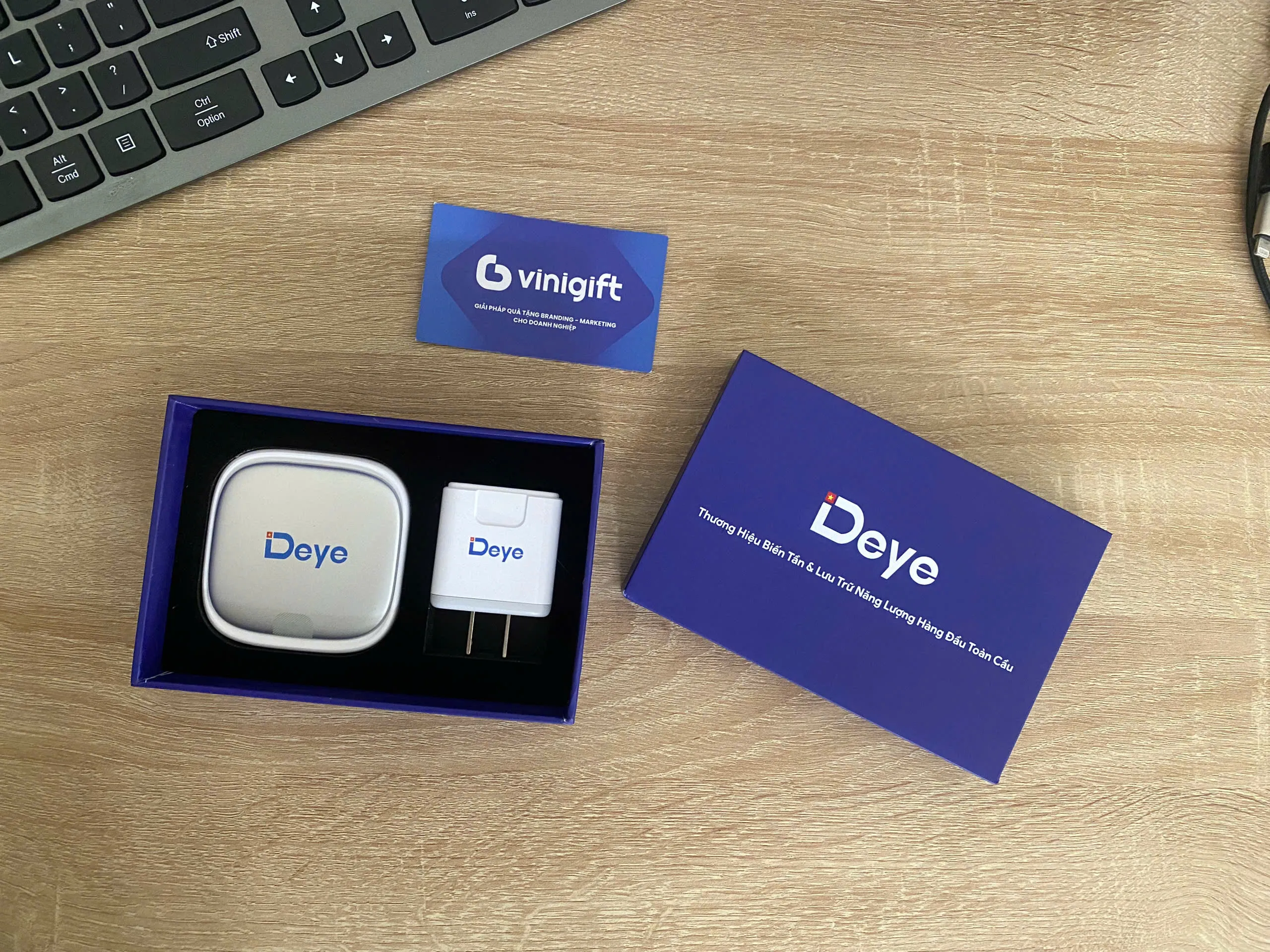 - Màu Sắc Thương Hiệu: Hộp được thiết kế đồng bộ theo màu sắc thương hiệu của bạn (như màu Xanh/Đen của DEYE), khẳng định dấu ấn ngay từ cái chạm tay đầu tiên.