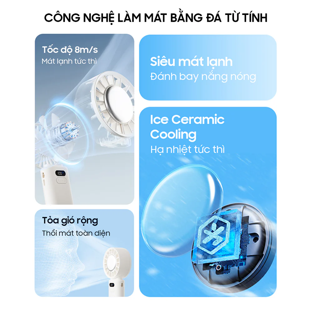 Quạt Mini cầm tay làm mát OLLIE FAN-ICE Z – Công nghệ đá từ, in logo thương hiệu cao cấp